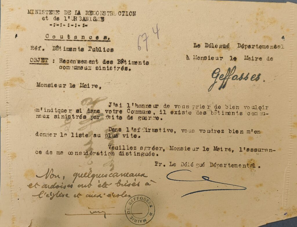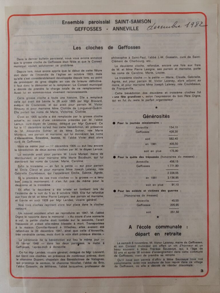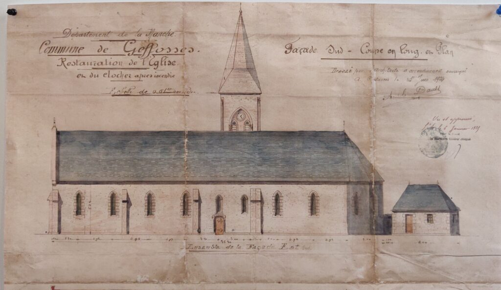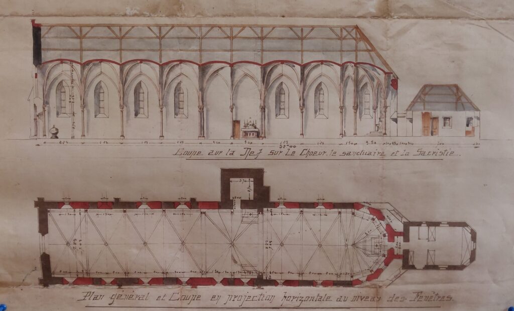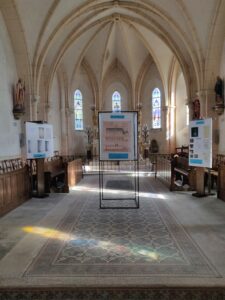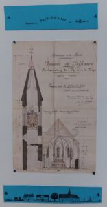 L’exposition présente les documents d’archives concernant cette reconstruction (lire le document), ainsi qu’un historique des cloches de l’église (lire le document)